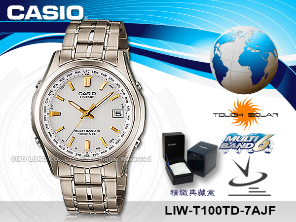 LIW-T100TD-7AJF  CASIO 日系電波錶 不鏽鋼錶帶 白面 太陽能電力 世界時間
