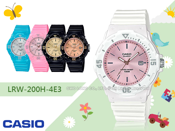 LRW-200H-4E3 CASIO 指針錶 橡膠錶帶 防水100米 白色粉面