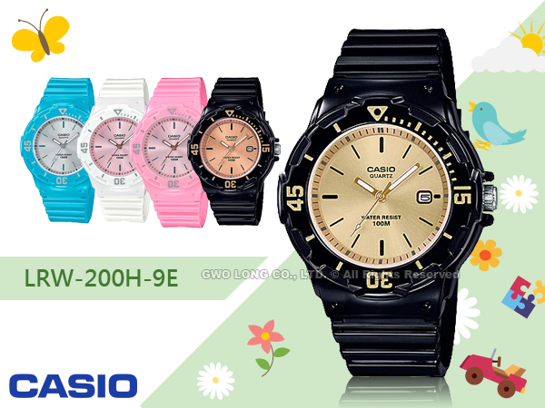 LRW-200H-9E CASIO 指針錶 橡膠錶帶 防水100米 黑色金面