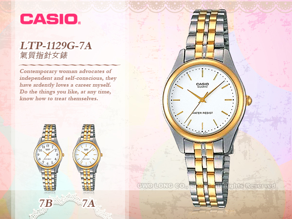 LTP-1129G-7A CASIO 指針錶 不鏽鋼錶帶 生活防水