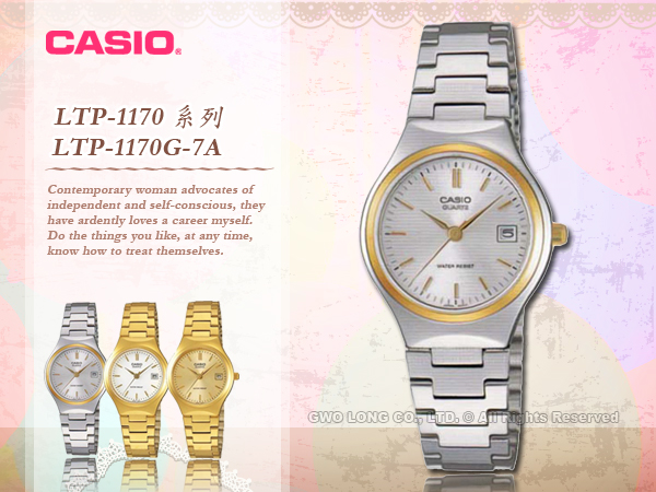 LTP-1170G-7A CASIO 指針錶 不鏽鋼錶帶 生活防水 強力防刮礦物玻璃
