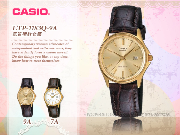 LTP-1183Q-9A CASIO 指針錶 皮革錶帶 生活防水 礦物玻璃