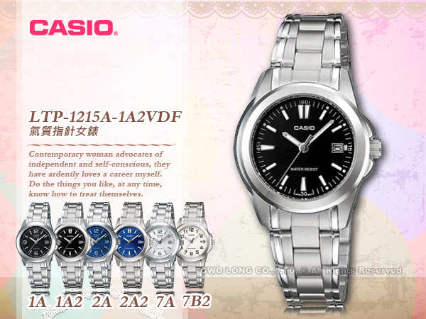LTP-1215A-1A2DF CASIO 指針錶 不鏽鋼錶帶 生活防水 礦物玻璃