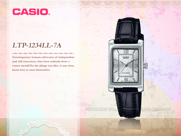 LTP-1234LL-7A CASIO 氣質新款 方型指針女錶 銀白 數字刻度 皮革錶帶 生活防水