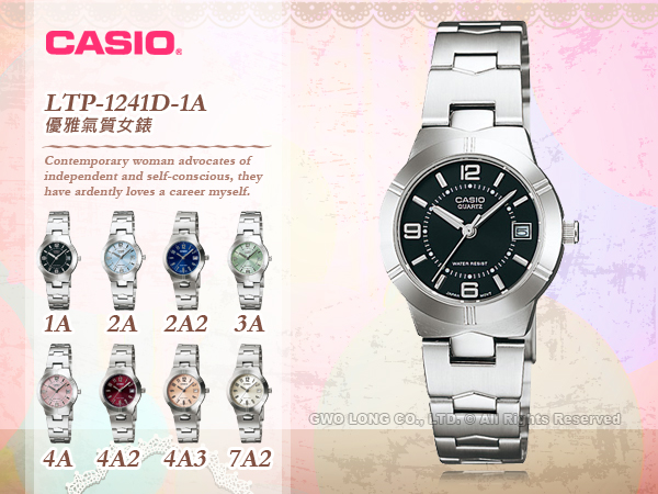LTP-1241D-1A CASIO 指針錶 不鏽鋼錶帶 生活防水 礦物玻璃