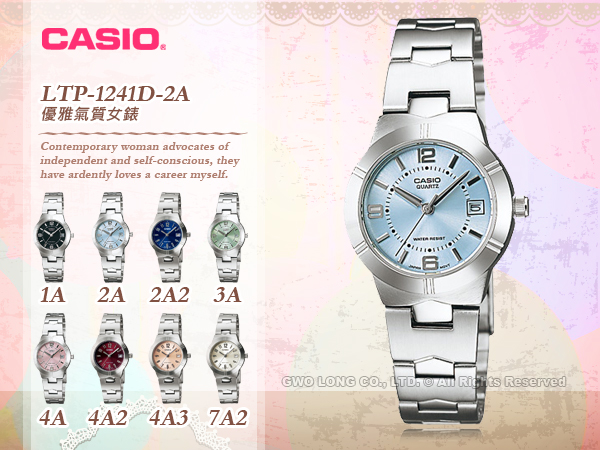 LTP-1241D-2A CASIO 指針錶 不鏽鋼錶帶 生活防水 礦物玻璃