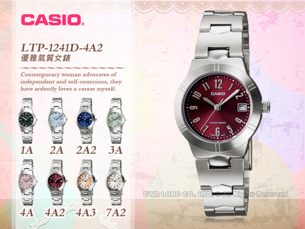LTP-1241D-4A2DF CASIO 指針錶 不鏽鋼錶帶 生活防水 礦物玻璃