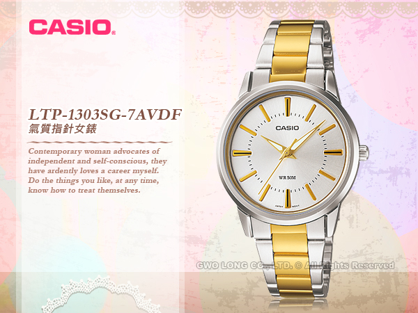 LTP-1303SG-7A CASIO 指針錶 不鏽鋼錶帶 礦物玻璃 防水50米