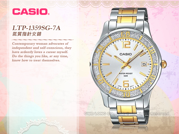 LTP-1359SG-7A CASIO 指針錶 不鏽鋼錶帶 生活防水 礦物玻璃 日期顯示