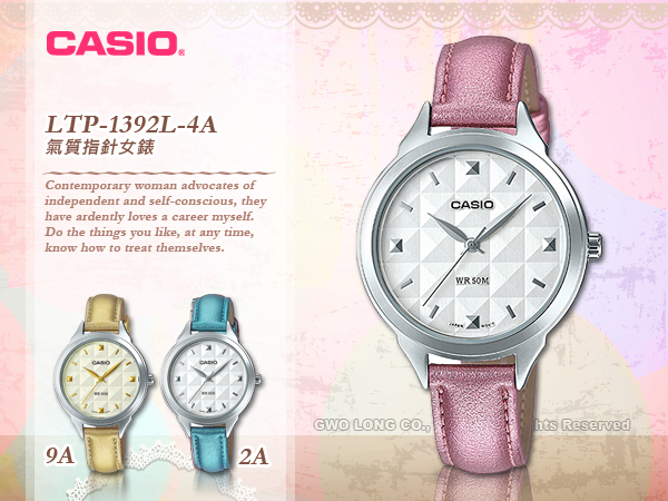 LTP-1392L-4A CASIO 指針錶 皮革錶帶 防水50米 礦物玻璃