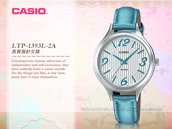 LTP-1393L-2A CASIO 指針錶 皮革錶帶 防水50米 礦物玻璃