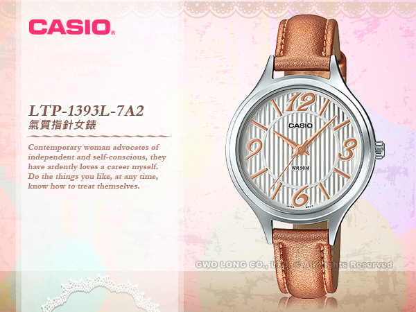 LTP-1393L-7A2 CASIO 指針錶 皮革錶帶 防水50米 礦物玻璃