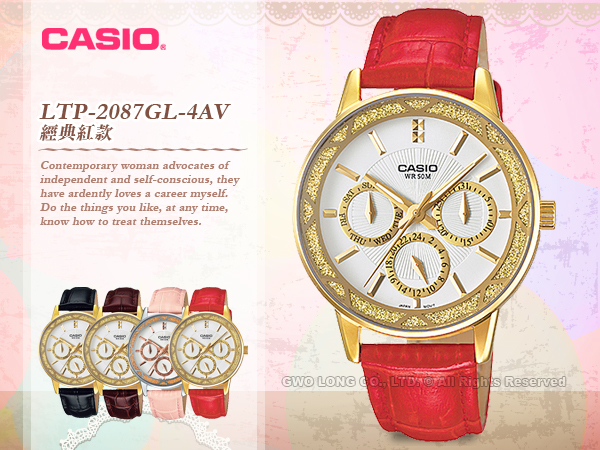 LTP-2087GL-4A CASIO 指針錶 皮革錶帶 礦物玻璃 生活防水