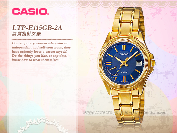 LTP-E115GB-2A CASIO 指針錶 不鏽鋼錶帶 生活防水 礦物玻璃 扇形星期盤