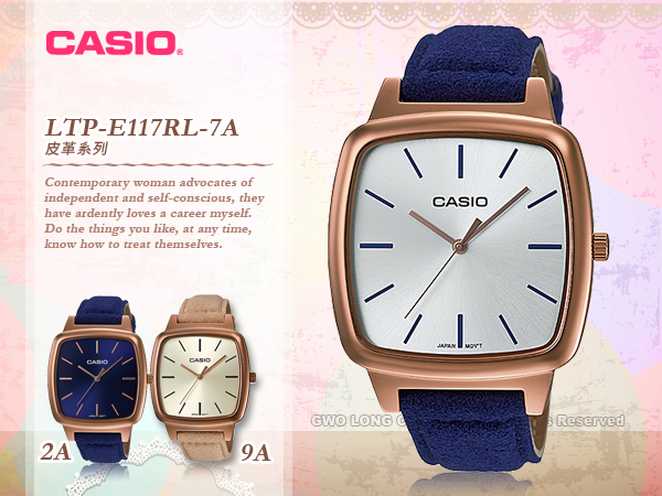 LTP-E117RL-7A CASIO 指針錶 皮革錶帶 生活防水 礦物玻璃