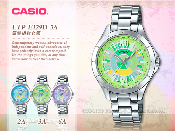 LTP-E129D-3A CASIO 指針錶 不鏽鋼錶帶 生活防水 礦物玻璃