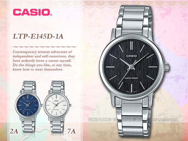 LTP-E145D-1A CASIO 指針錶 不鏽鋼錶帶 防水50米 礦物玻璃