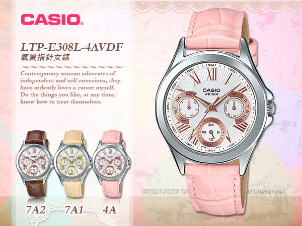 LTP-E308L-4AVDF CASIO 指針錶 皮革錶帶 防水50米 礦物玻璃