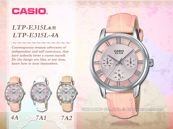 LTP-E315L-4A CASIO 指針錶 皮革錶帶 防水50米 礦物玻璃