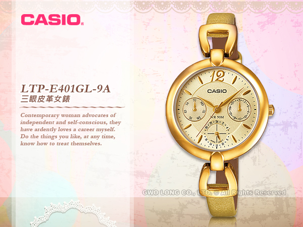 LTP-E401GL-9A CASIO 指針錶 皮革錶帶 防水50米 礦物玻璃
