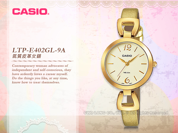 LTP-E402GL-9A CASIO 指針錶 皮革錶帶 防水50米 礦物玻璃