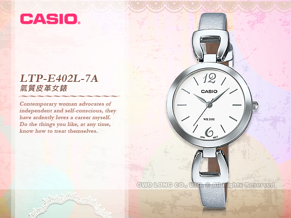 LTP-E402L-7A CASIO 指針錶 皮革錶帶 防水50米 礦物玻璃
