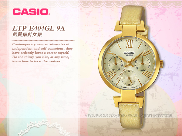 LTP-E404GL-9A CASIO 指針錶 皮革錶帶 防水50米 礦物玻璃