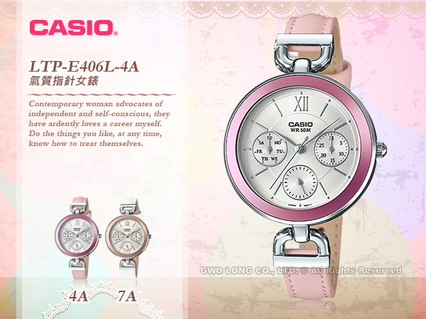 LTP-E406L-4A CASIO 指針錶 皮革錶帶 防水50米 礦物玻璃