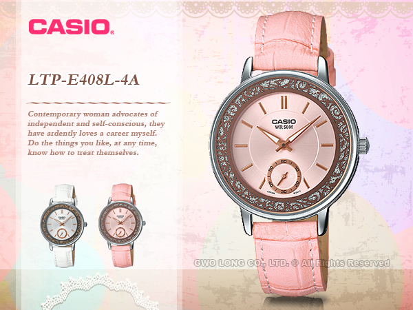 LTP-E408L-4A CASIO 指針錶 皮革錶帶 防水50米 礦物玻璃