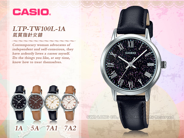 LTP-TW100L-1A CASIO 指針錶 皮革錶帶 防水50米 礦物玻璃