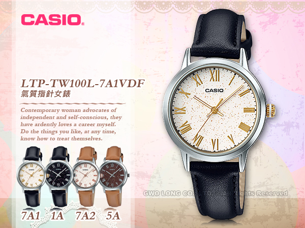 LTP-TW100L-7A1VDF CASIO 指針錶 皮革錶帶 防水50米 礦物玻璃
