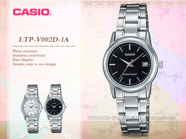 LTP-V002D-1A CASIO 指針錶 不鏽鋼錶帶 生活防水 礦物玻璃