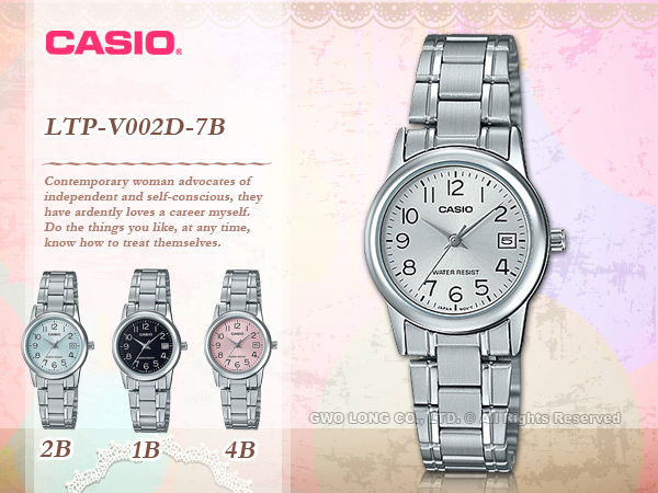 LTP-V002D-7B CASIO 指針錶 不鏽鋼錶帶 生活防水 礦物玻璃 LTP-V002D