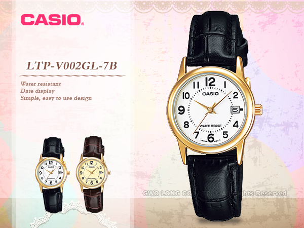 LTP-V002GL-7B CASIO 指針錶 皮革錶帶 生活防水 礦物玻璃