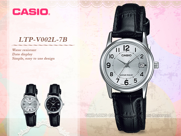 LTP-V002L-7B CASIO 指針錶 皮革錶帶 生活防水 礦物玻璃