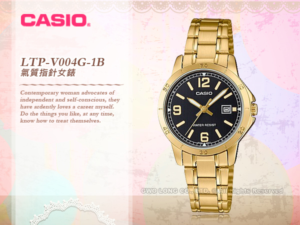LTP-V004G-1B CASIO 簡約氣質指針錶 金色 不鏽鋼錶帶 日常生活防水