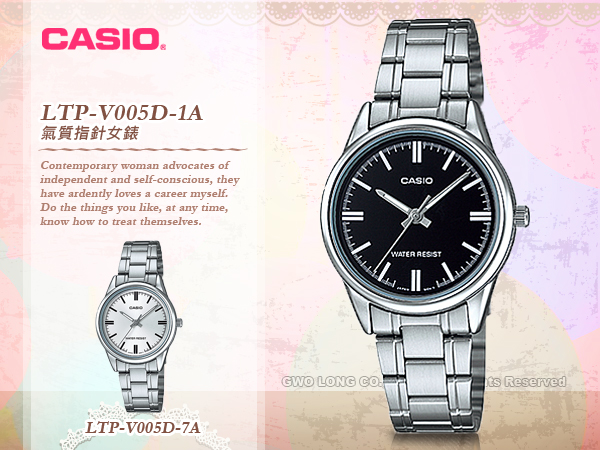 LTP-V005D-1A CASIO 指針錶 不鏽鋼錶帶 生活防水 礦物玻璃