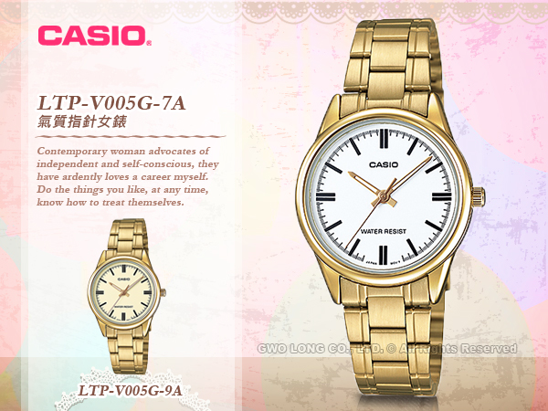 LTP-V005G-7A CASIO 指針錶 不鏽鋼錶帶 生活防水 礦物玻璃