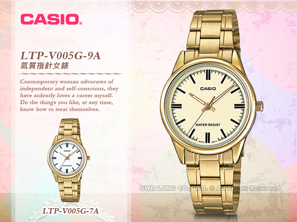 LTP-V005G-9A CASIO 指針錶 不鏽鋼錶帶 生活防水 礦物玻璃