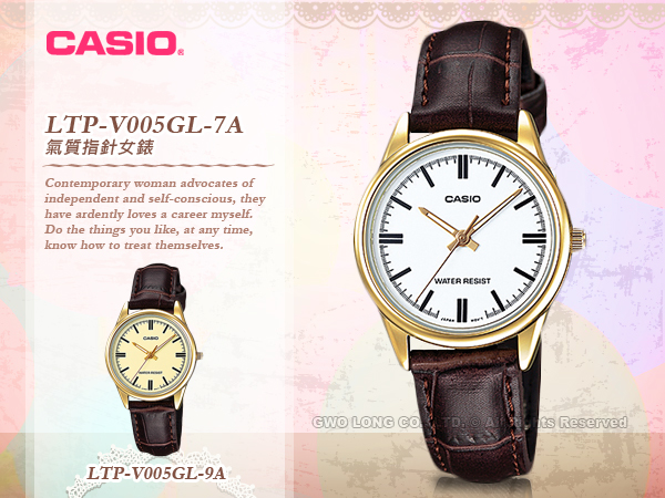 LTP-V005GL-7A CASIO 指針錶 皮革錶帶 生活防水 礦物玻璃
