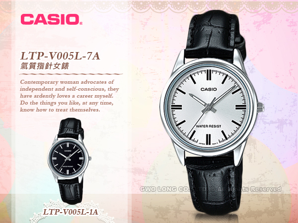 LTP-V005L-7A CASIO 指針錶 皮革錶帶 生活防水 礦物玻璃