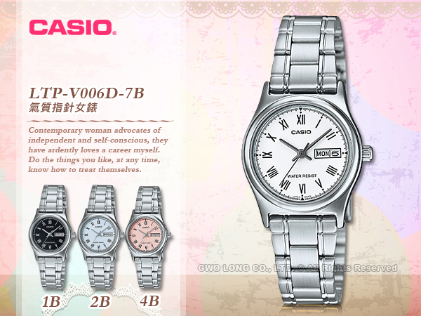LTP-V006D-7B CASIO 指針錶 不鏽鋼錶帶 生活防水 礦物玻璃