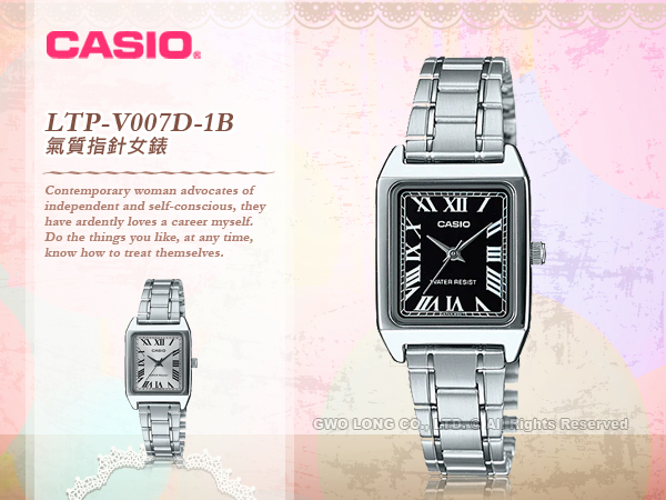 LTP-V007D-1B CASIO 氣質簡約指針錶 不鏽鋼錶帶 生活防水 礦物玻璃