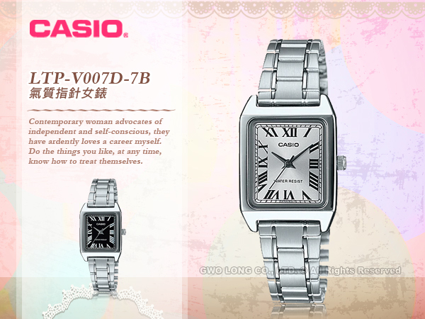 LTP-V007D-7B CASIO 氣質簡約指針錶 不鏽鋼錶帶 生活防水 礦物玻璃