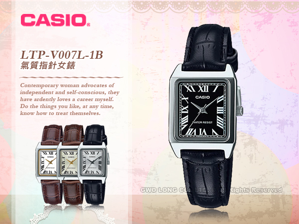 LTP-V007L-1B CASIO 氣質簡約指針錶 日常生活防水 礦物玻璃
