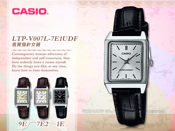 LTP-V007L-7E1 CASIO 指針錶 皮革錶帶 生活防水 礦物玻璃