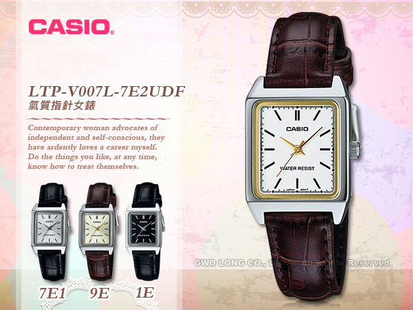 LTP-V007L-7E2 CASIO 指針錶 皮革錶帶 生活防水 礦物玻璃