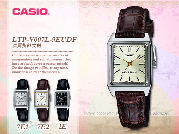 LTP-V007L-9E CASIO 指針錶 皮革錶帶 生活防水 礦物玻璃