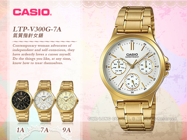 LTP-V300G-7A CASIO 指針錶 不鏽鋼錶帶 礦物玻璃 生活防水