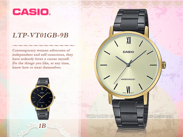 LTP-VT01GB-9B CASIO 簡約指針女錶 不鏽鋼錶帶 日常生活防水 LTP-VT01GB